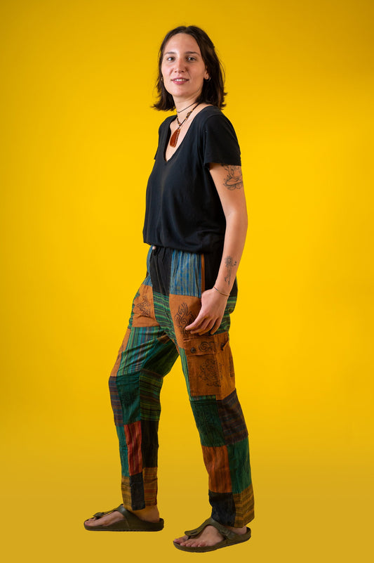100% Cotton | Patch | Block print | Stone Washed | Unisex | Ethical | Hippie | Cargo Style | Pant | Trouser | Made In Nepal